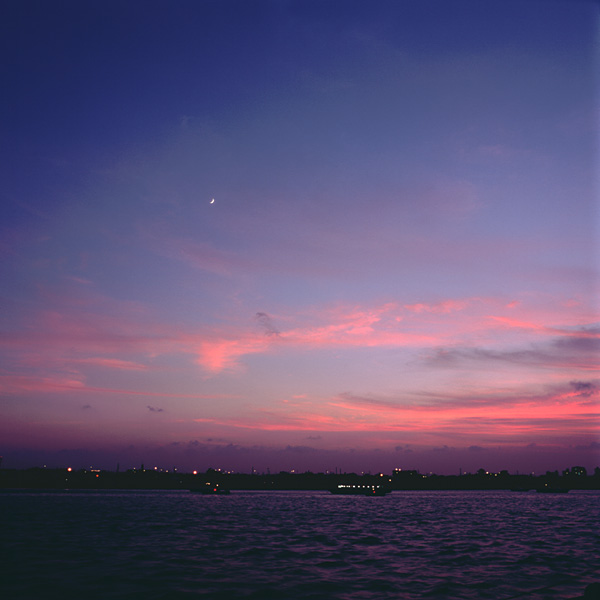花火を待っている間の江戸川の夕焼け